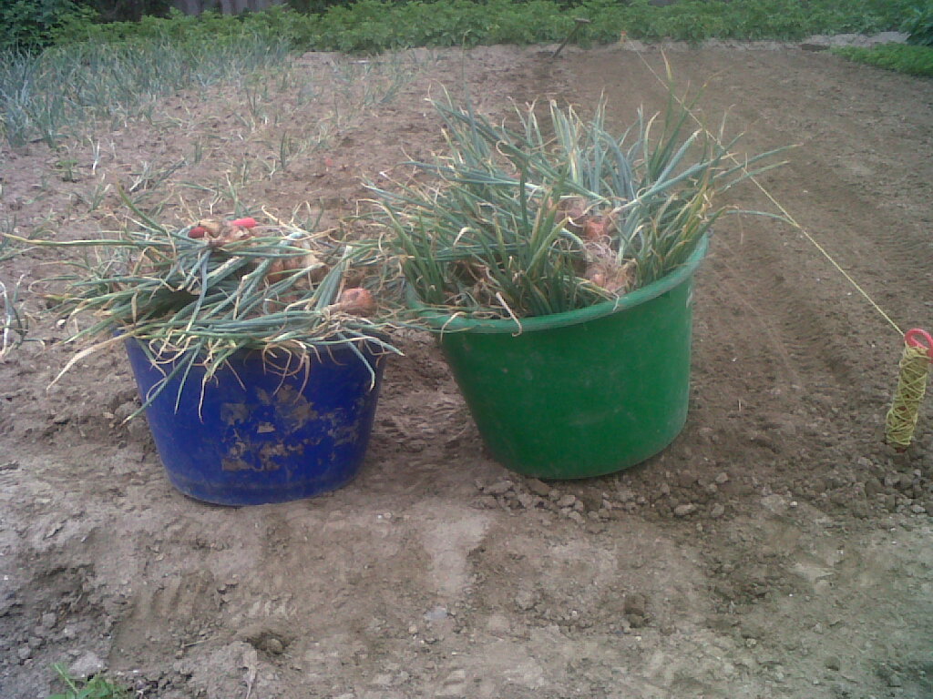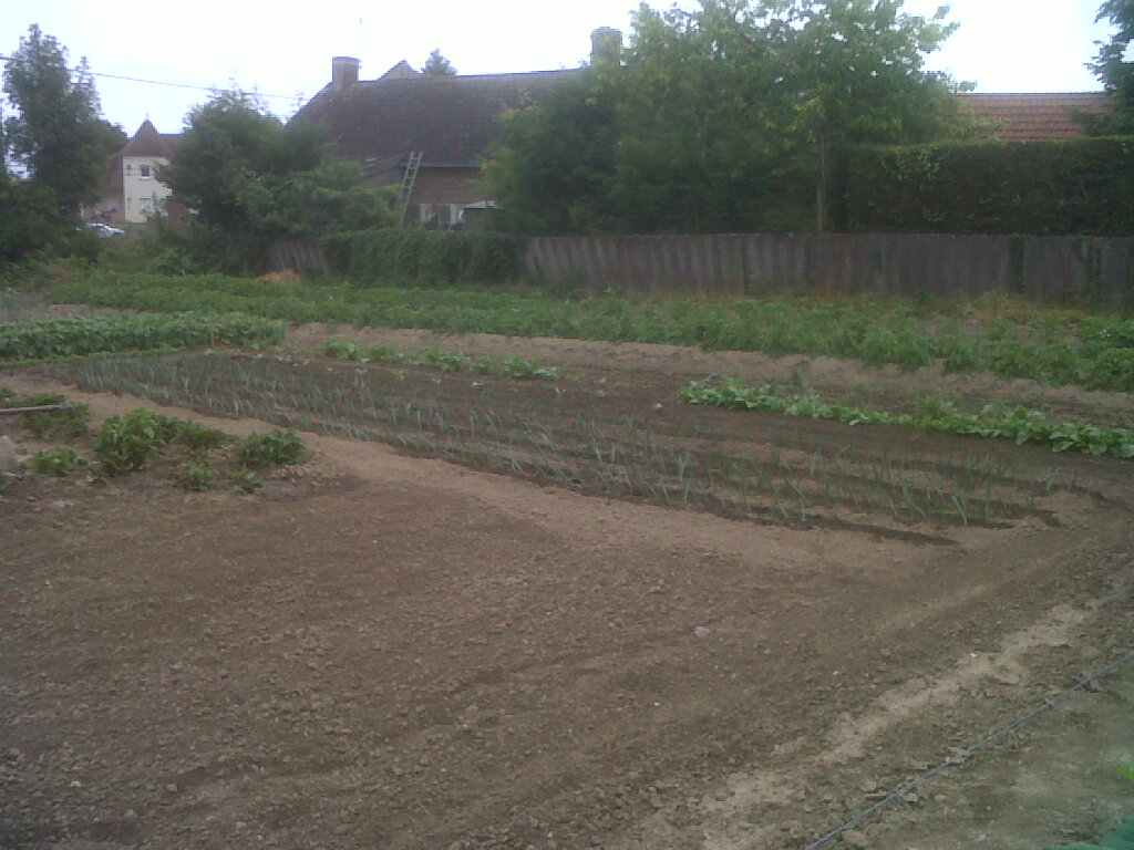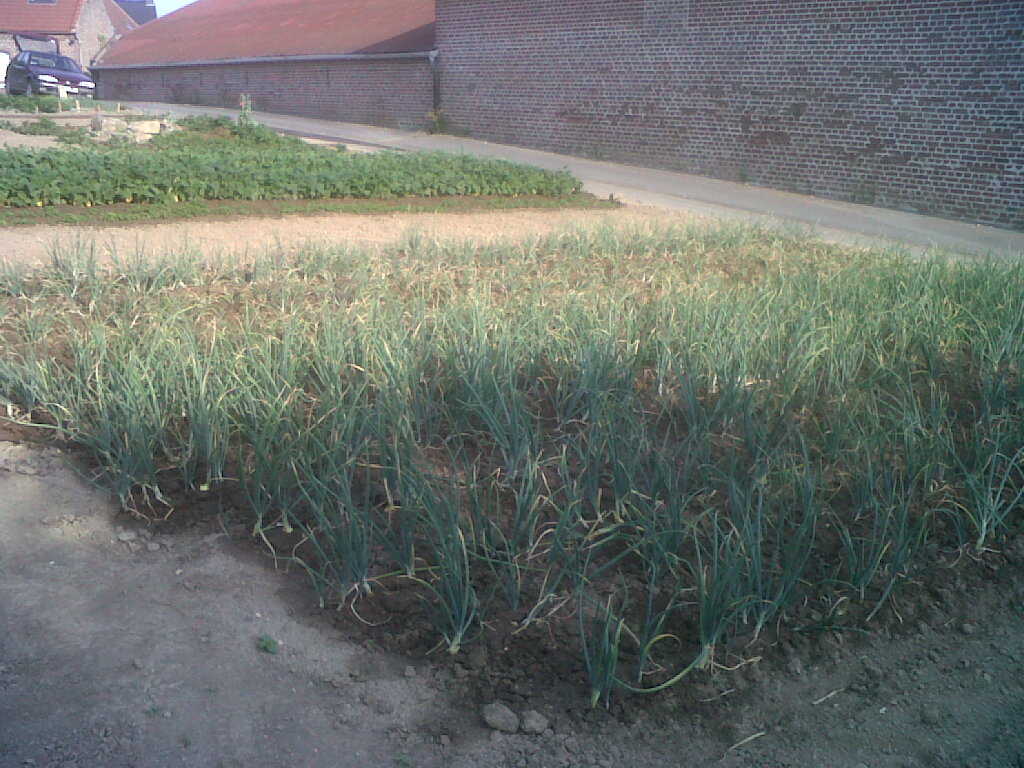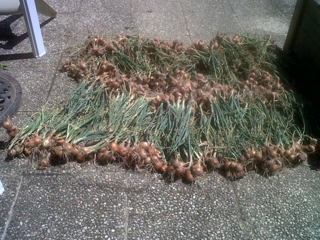 Après l'arrosage ce matin une petite récolte d'oignon queue couché ,encore une bonne moitié en place :roll: .(grosseur moyen ) :( .
