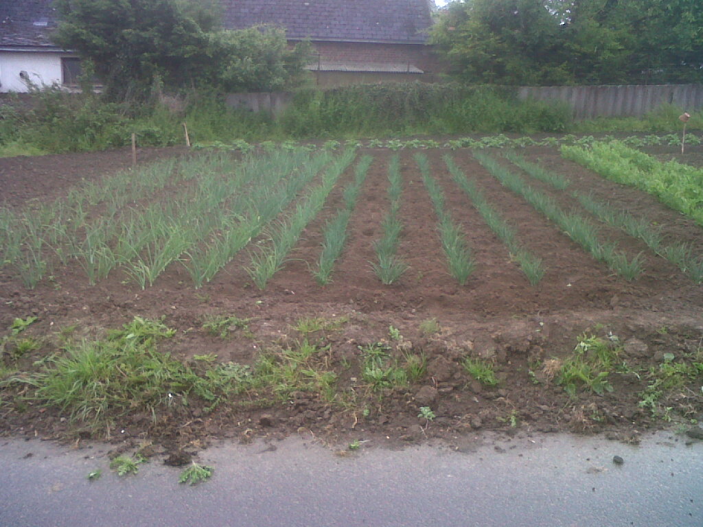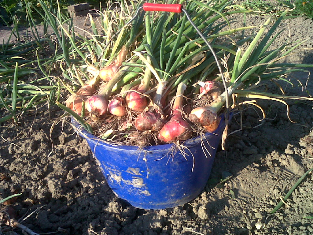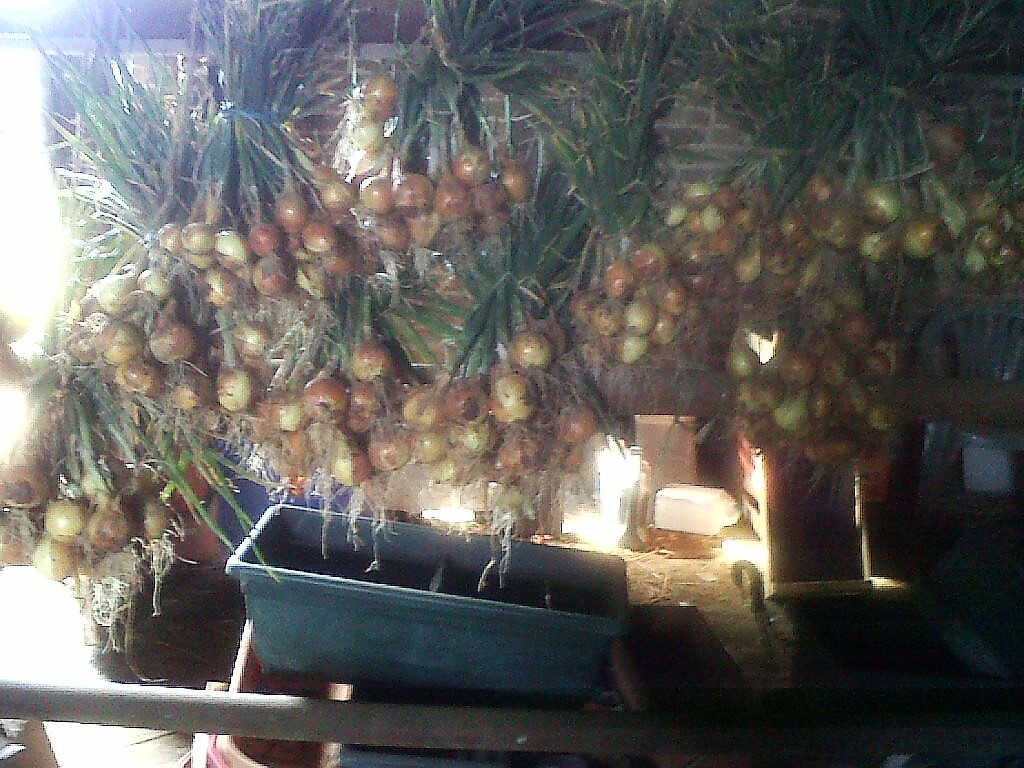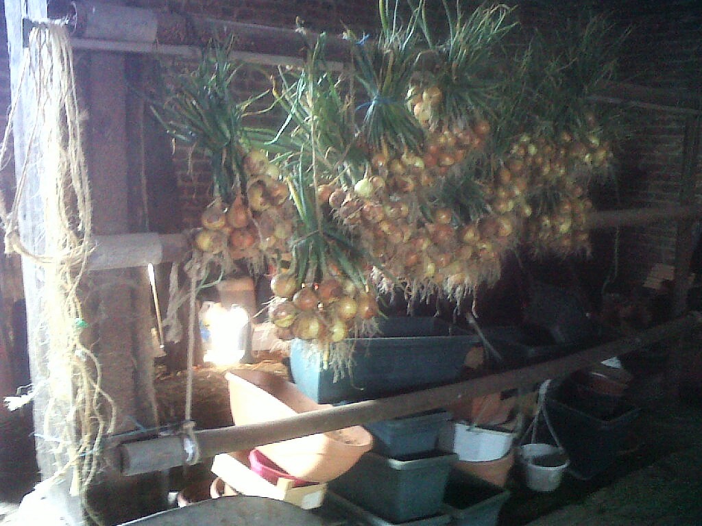 Après l'arrosage ce matin une petite récolte d'oignon queue couché ,encore une bonne moitié en place :roll: .(grosseur moyen ) :( .