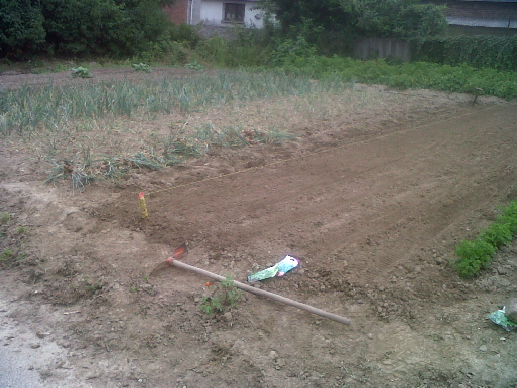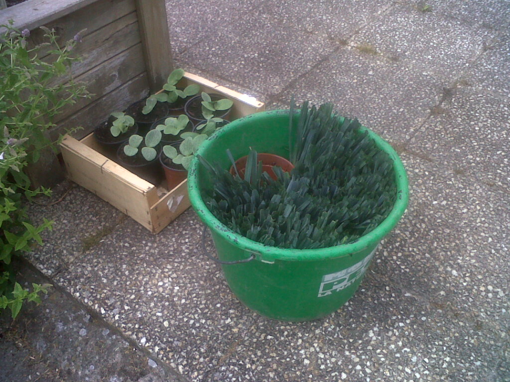 Toujours le repiquage de poireaux et fin de la pépinière ,habillage du poireau pour le grand potager demain matin :wink: .