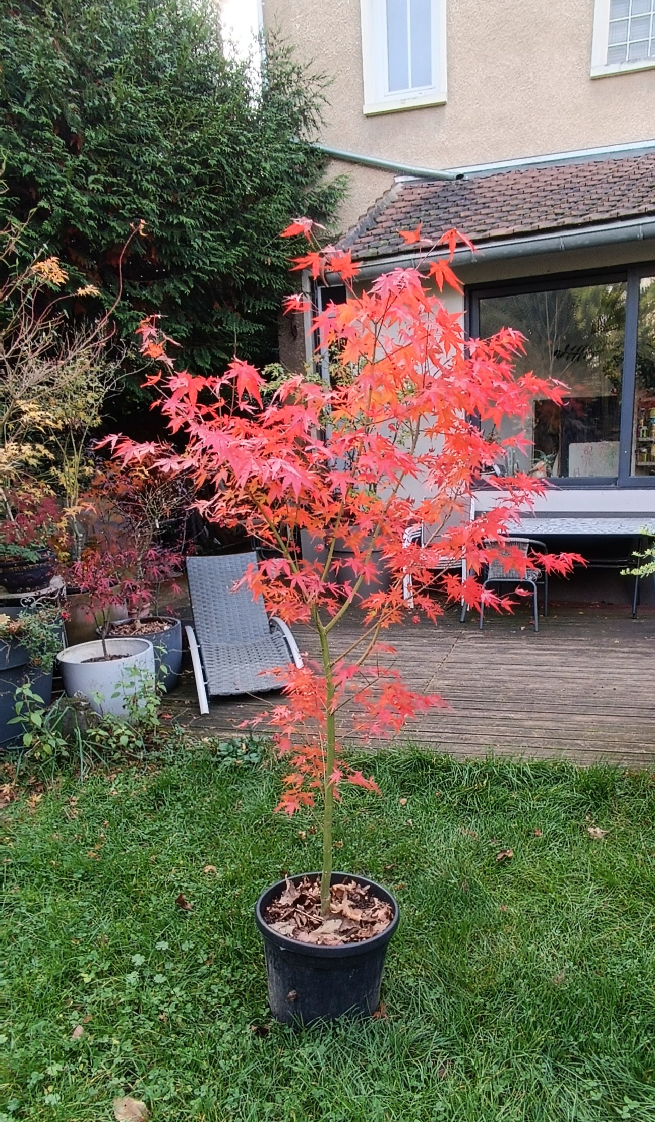 Celui ci par exemple offre des couleurs intenses en automne, en plus d avoir une belle pousse (5 ans). Il est aussi très vert franc presque clair en été. C est un de mes meilleurs érables en automne. Je n' ai pour l instant pas de place en pleine terre.