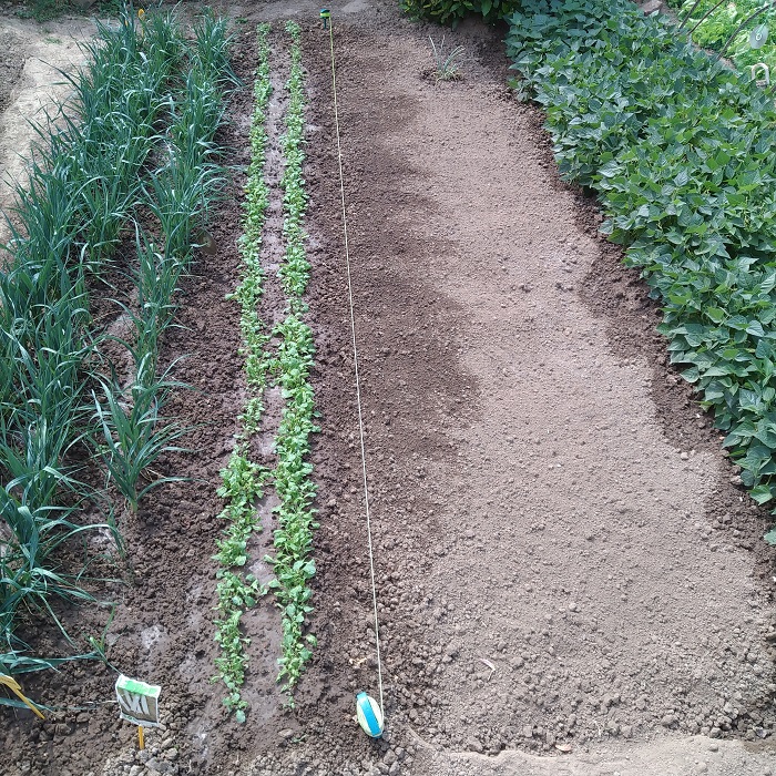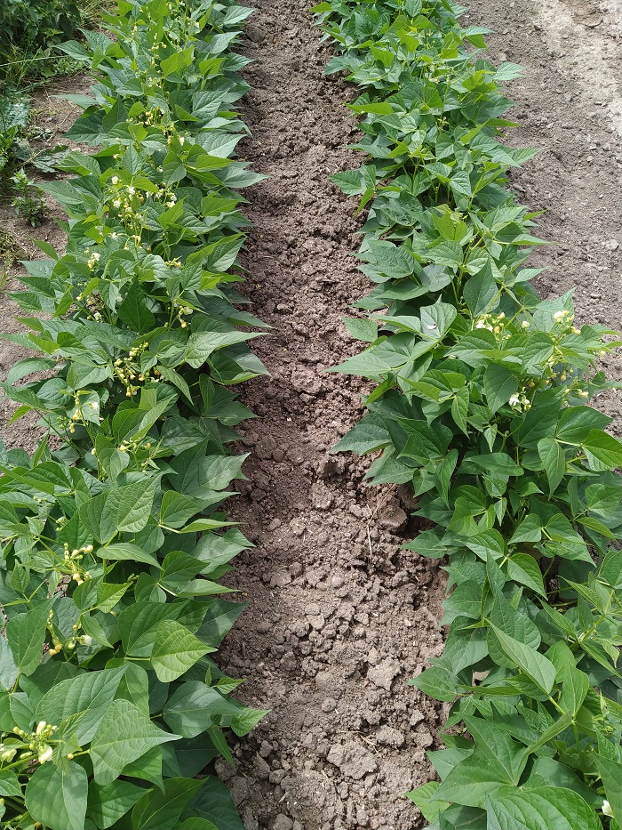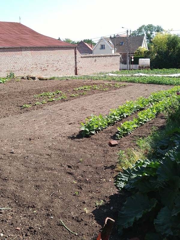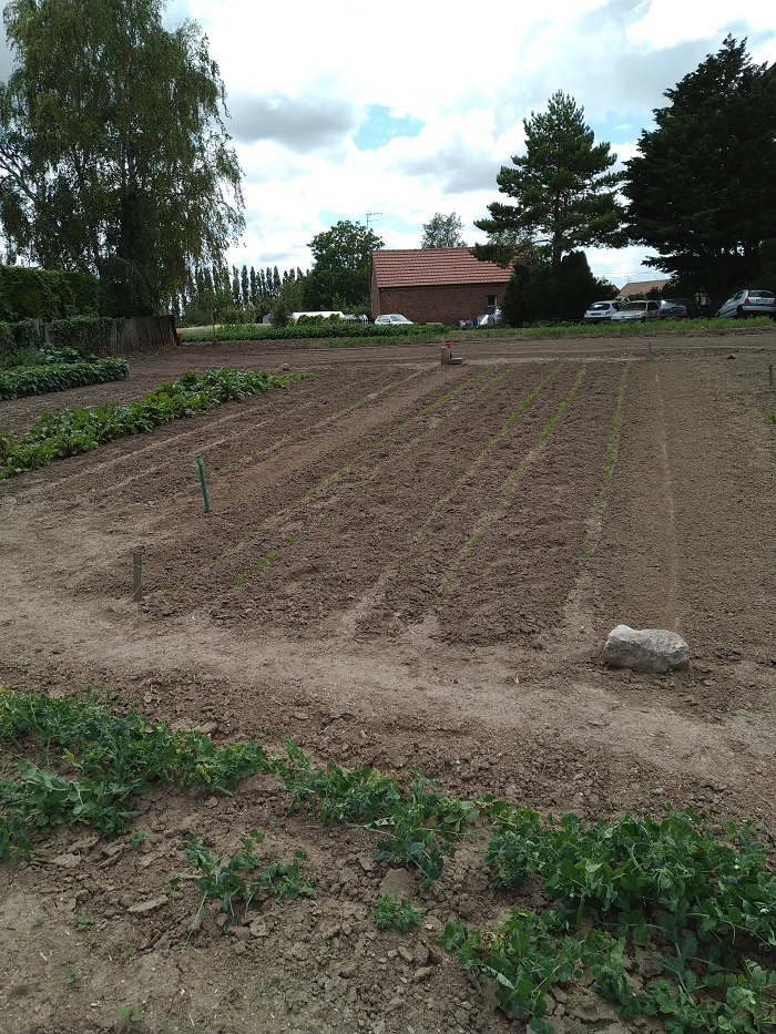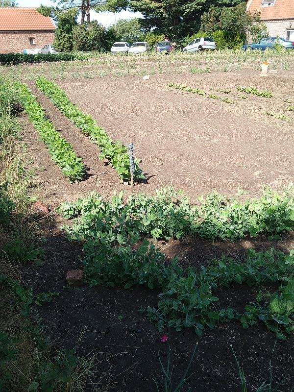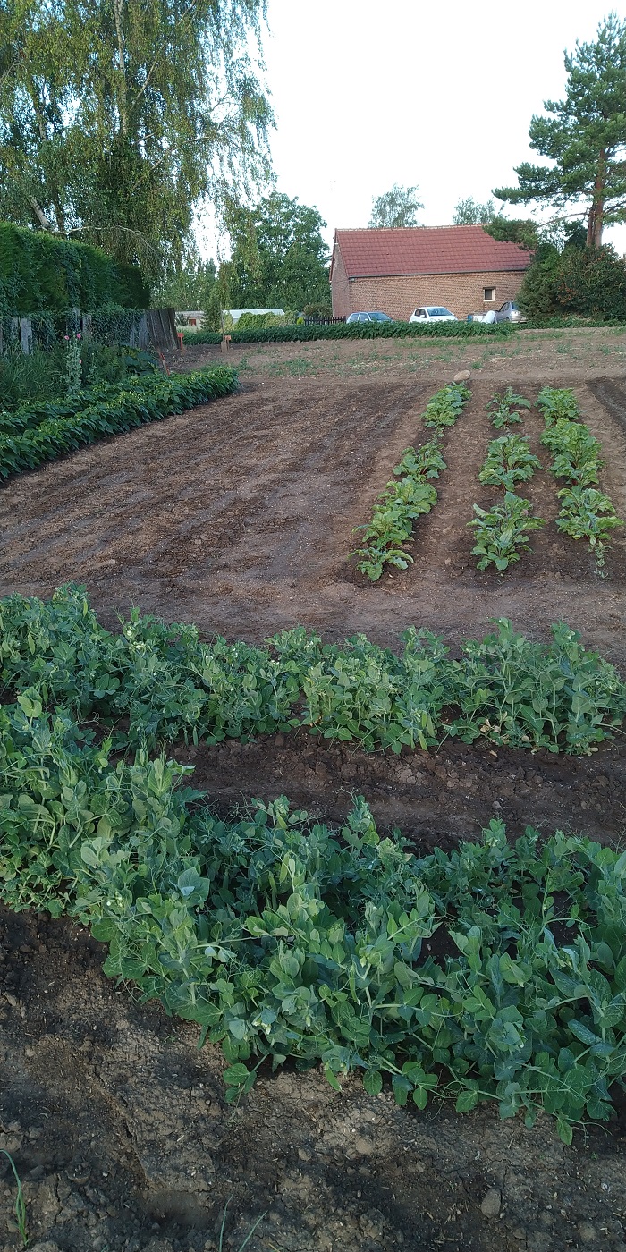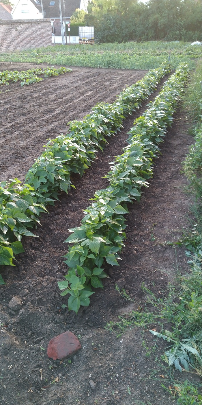 Au grand potager j'ai semé 7 routes de haricot jaune pour septembre ,bientôt la relève arrive "photos"