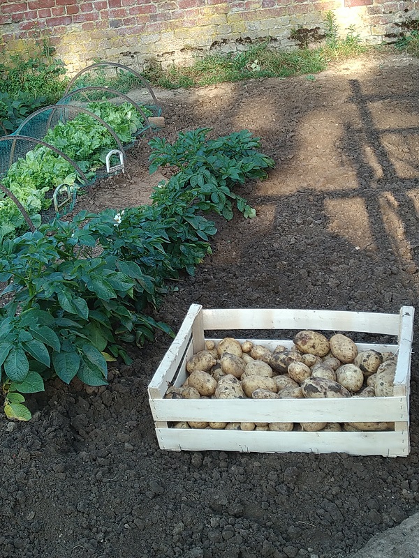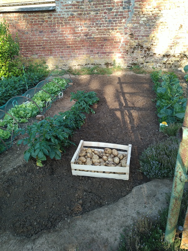 Au petit potager arrachage pommes de terre Appolo 83 jours et préparation emplacement repiquage poireaux