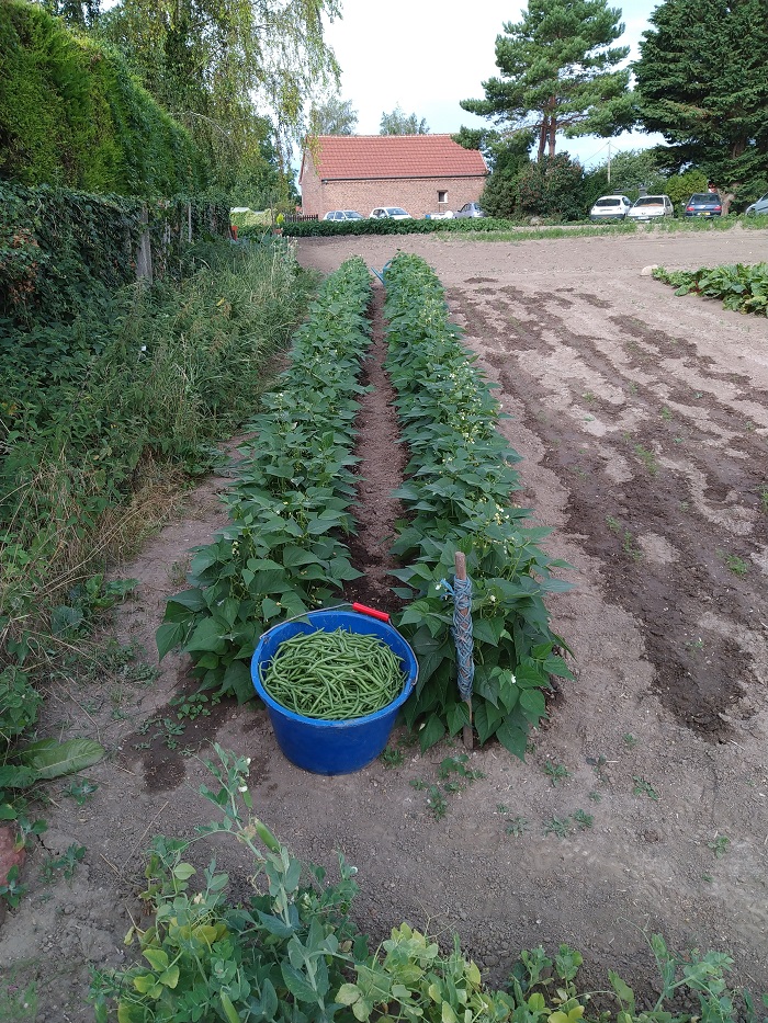 Grand potager ce matin première cueillette de haricot semé le 13 mai