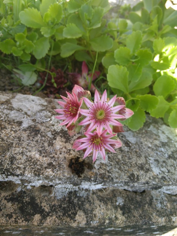 Les joubarbes que j'adore, et leur fleur à la fois étrange et délicate :