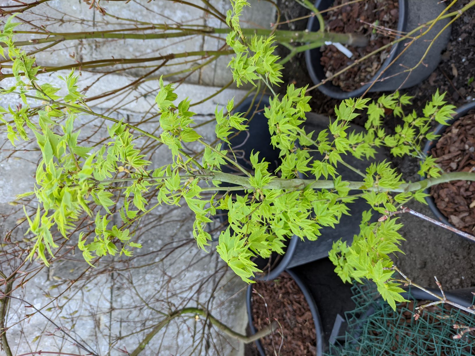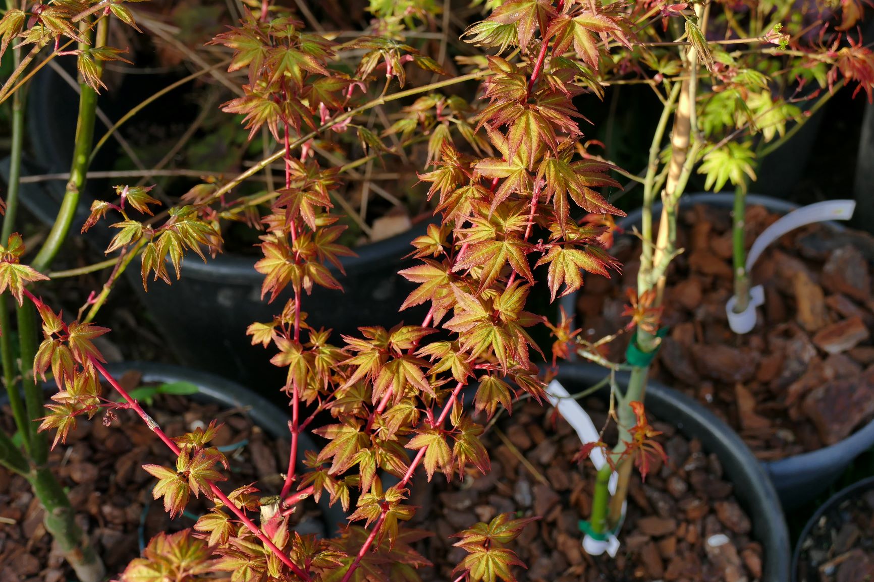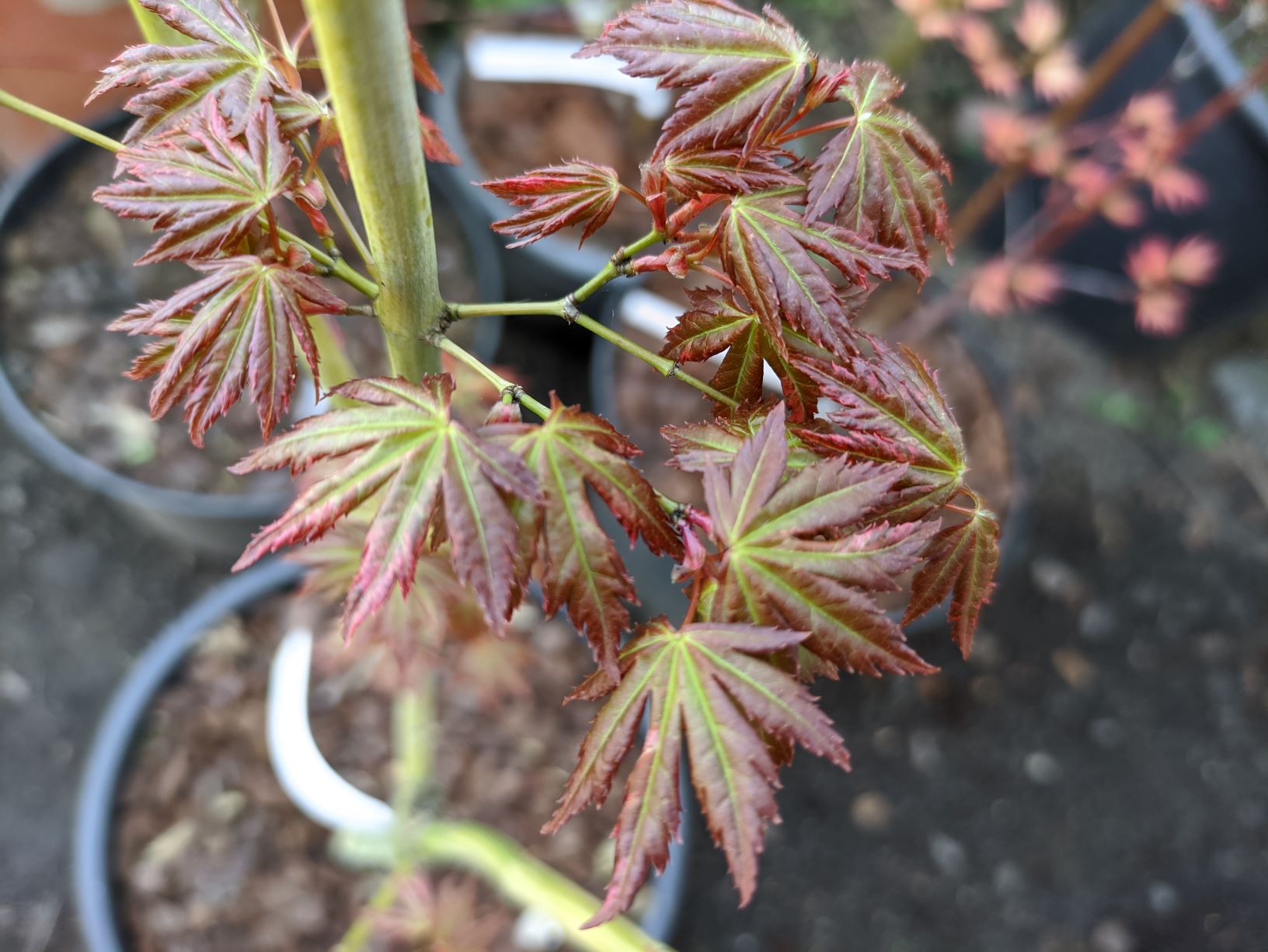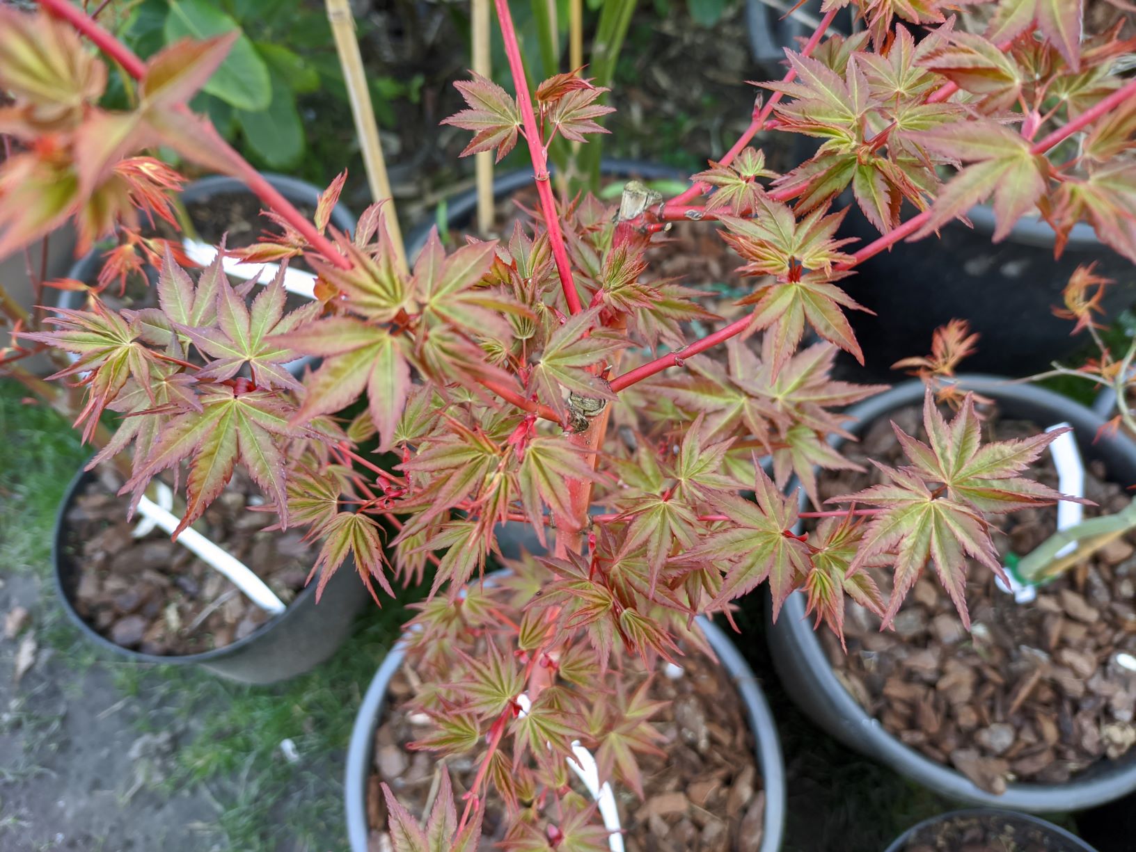 @ POPMACKENZY : De bien beaux spécimens que tu nous présentes là ! Je " bave " sur ton 'amagi shigure' et ton ' Olsens Frosted Strawberry' : ils sont de belle taille, les miens sont plus petits ! Je les ai mis en terre, en lisière d'un couvert végétal, c'est mieux pour leur croissance, car ces deux cultivars sont très sensibles à la fraicheur racinaire, mais ils ont besoin malgré tout de lumière pour développer leurs racines. La pleine terre est donc ce qui leur convient le mieux, car la croissance racinaire permet d'alimenter les feuilles, qui ne sèchent pas, et l'arbre accroît chaque année sa biomasse, source des réserves, et le cycle recommence... Je l'ai faite courte. Par contre, comme je le craignais, Météo France annonce des gelées matinales en milieu de semaine et malheureusement 'amagi shigure' à complètement débourré...