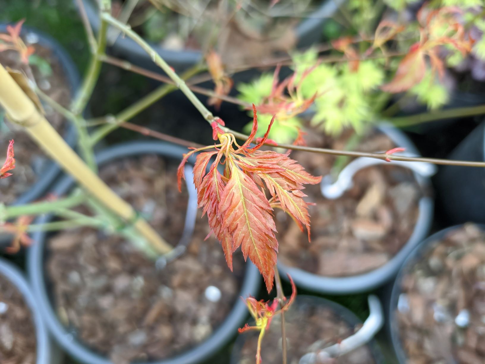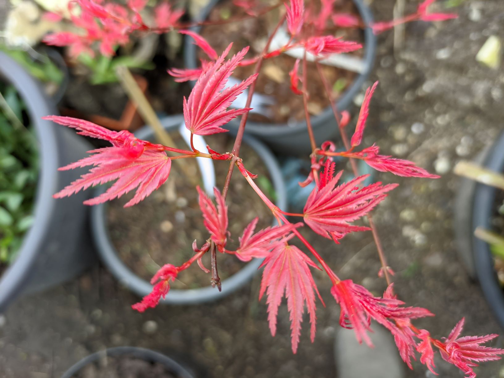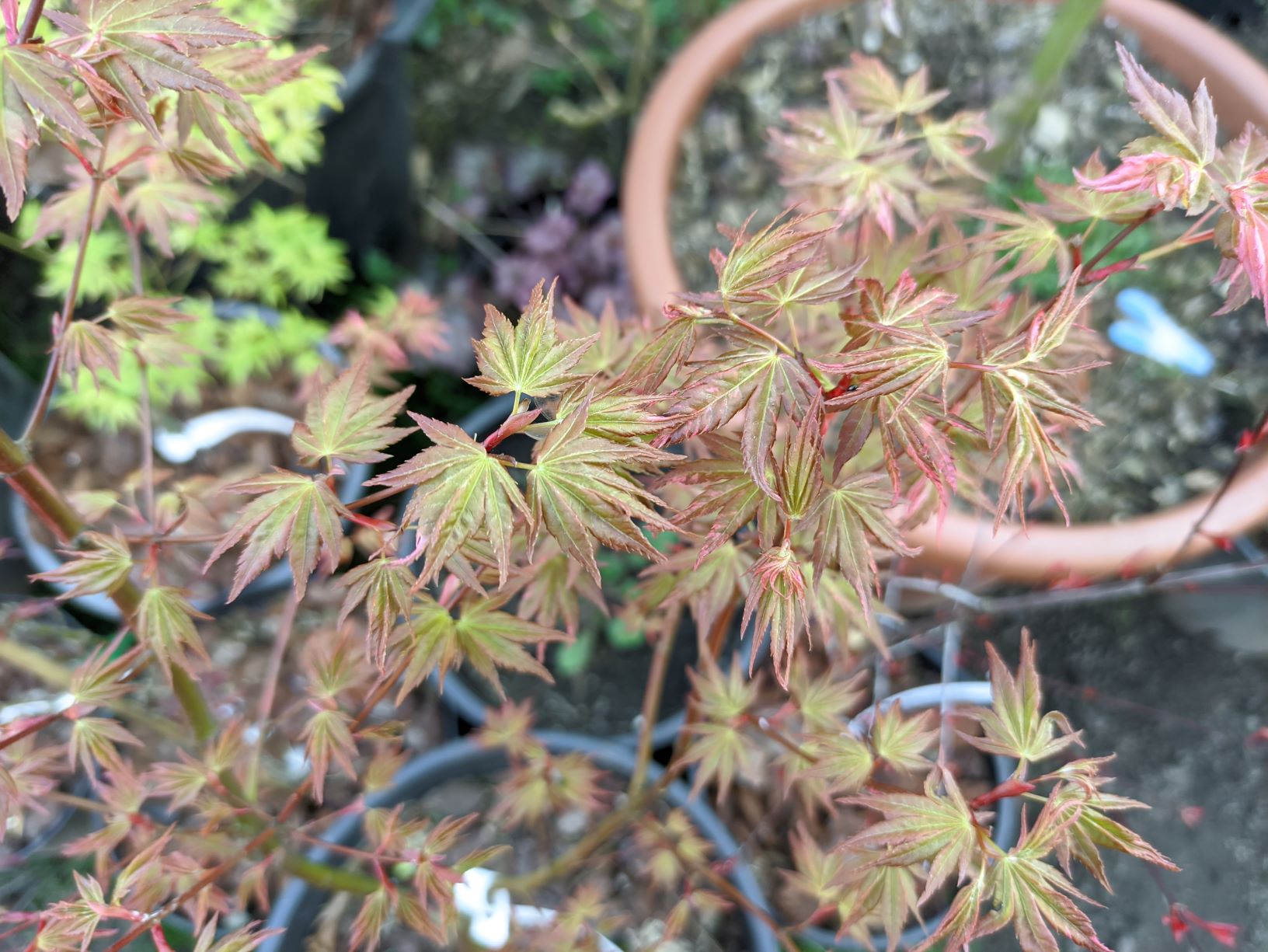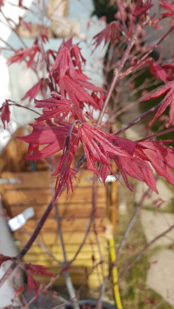 @ POPMACKENZY : De bien beaux spécimens que tu nous présentes là ! Je " bave " sur ton 'amagi shigure' et ton ' Olsens Frosted Strawberry' : ils sont de belle taille, les miens sont plus petits ! Je les ai mis en terre, en lisière d'un couvert végétal, c'est mieux pour leur croissance, car ces deux cultivars sont très sensibles à la fraicheur racinaire, mais ils ont besoin malgré tout de lumière pour développer leurs racines. La pleine terre est donc ce qui leur convient le mieux, car la croissance racinaire permet d'alimenter les feuilles, qui ne sèchent pas, et l'arbre accroît chaque année sa biomasse, source des réserves, et le cycle recommence... Je l'ai faite courte. Par contre, comme je le craignais, Météo France annonce des gelées matinales en milieu de semaine et malheureusement 'amagi shigure' à complètement débourré...