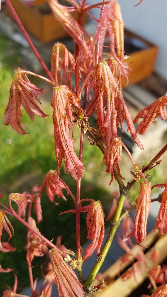 Merci pour ces précisions, j'imagine bien qu'en pleine terre ils seraient plus à l'aise, mais la terre n'est pas top par chez moi, de plus j'ai pas vraiment de coin ombragé idéal. Et je me dit que si un jour je dois déménager, j'emporte mes arbres.Misologue1 a écrit : ven. 02 avr. 2021 5:46 @ POPMACKENZY : De bien beaux spécimens que tu nous présentes là ! Je " bave " sur ton 'amagi shigure' et ton ' Olsens Frosted Strawberry' : ils sont de belle taille, les miens sont plus petits ! Je les ai mis en terre, en lisière d'un couvert végétal, c'est mieux pour leur croissance, car ces deux cultivars sont très sensibles à la fraicheur racinaire, mais ils ont besoin malgré tout de lumière pour développer leurs racines. La pleine terre est donc ce qui leur convient le mieux, car la croissance racinaire permet d'alimenter les feuilles, qui ne sèchent pas, et l'arbre accroît chaque année sa biomasse, source des réserves, et le cycle recommence... Je l'ai faite courte. Par contre, comme je le craignais, Météo France annonce des gelées matinales en milieu de semaine et malheureusement 'amagi shigure' à complètement débourré...