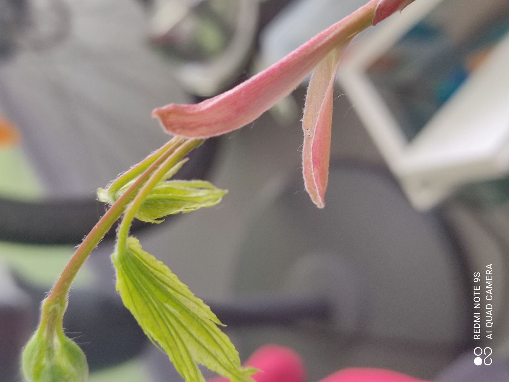 Il y a des sortes de tiges rose qui apparaissent prés des feuilles (photo 3) qu'est ce que c'est?