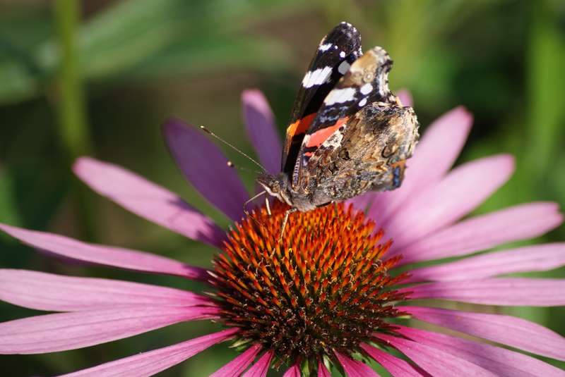 Je participe humblement avec un plant D'Echinacéa qui a reçu un joli visiteur