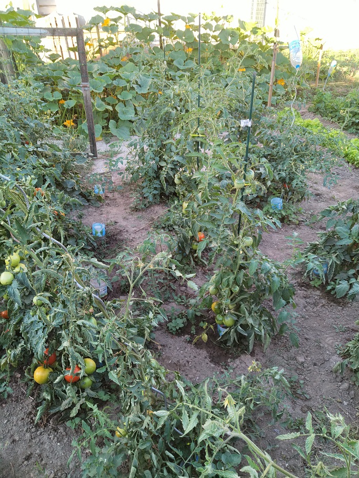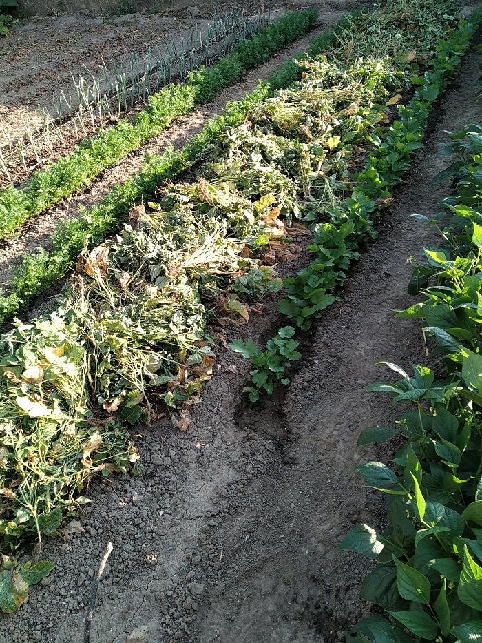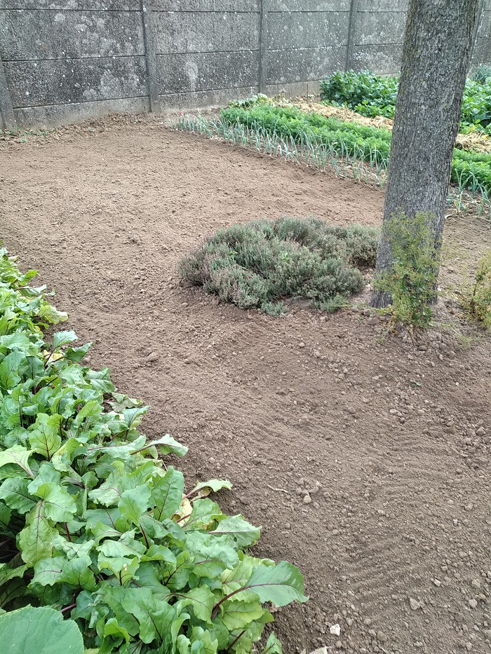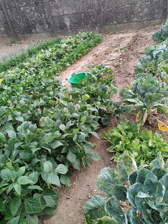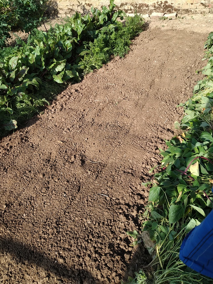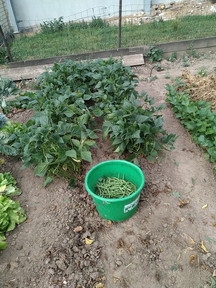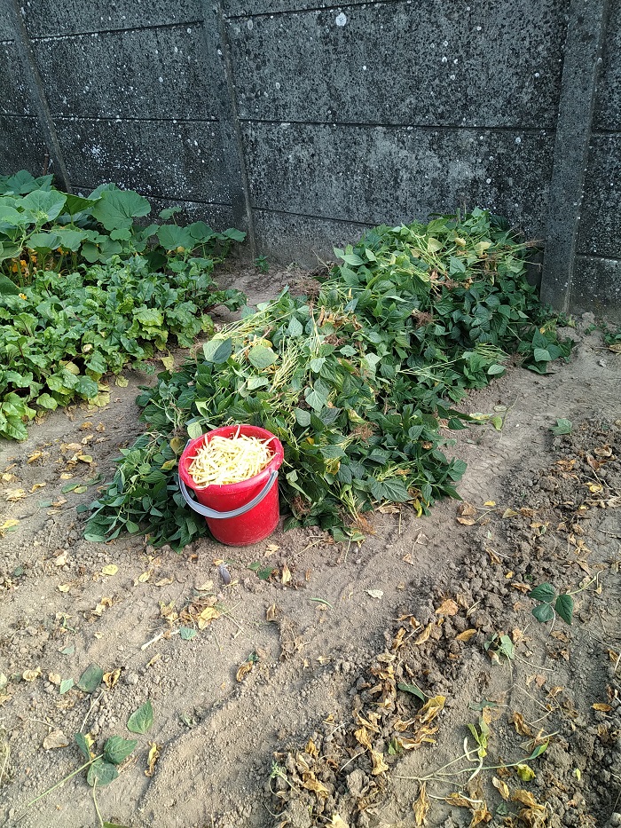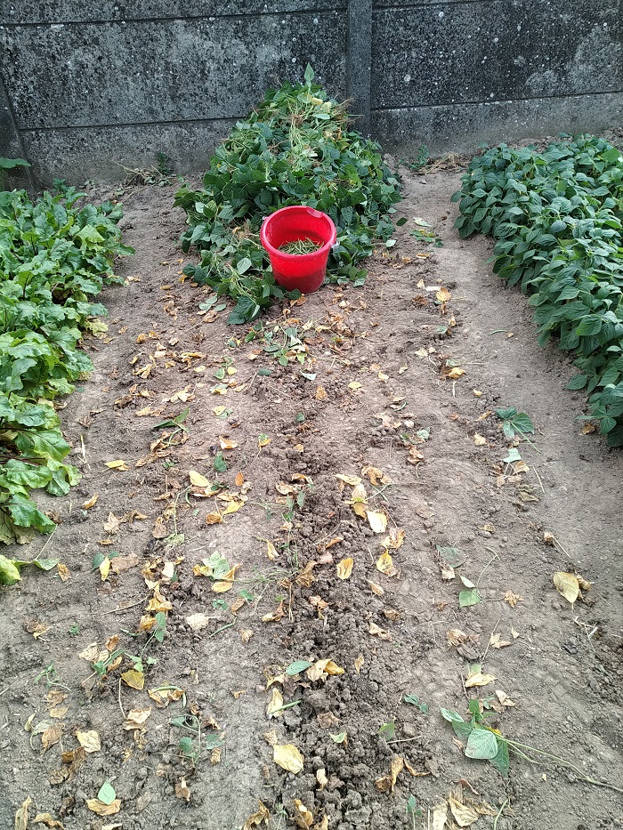 Petit potager les derniers haricots .bêchage de la parcelle est un coup de roule pour garder l'humidité, avant un autre semi