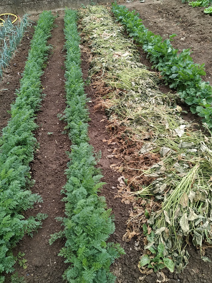 Un regard sur le petit potager sur les semis de persil et navets .Reprise du poireau satisfaisant, quant aux carottes elles risques d'être plus ou moins crochues