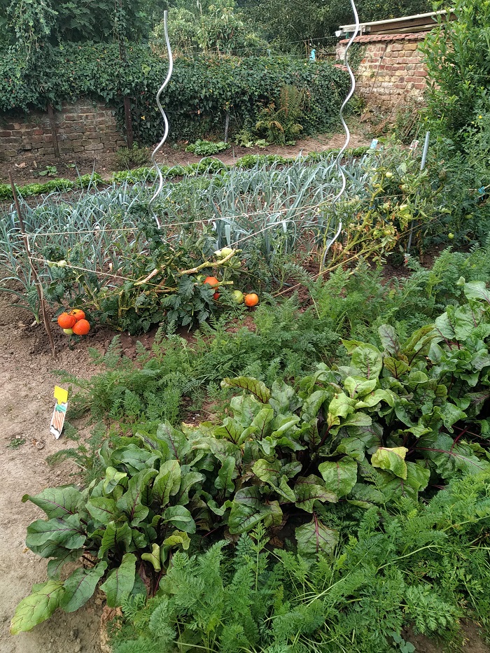 Grand potager ce matin, et encore dans les haricots après la petite pluie d'hier