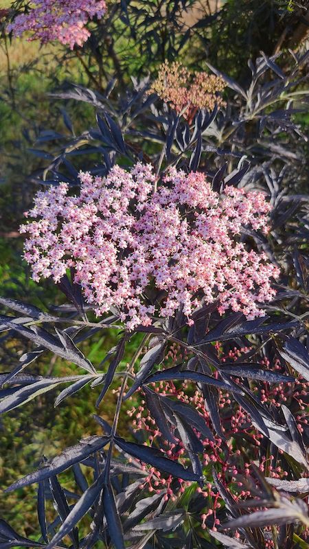 Sambucus Nigra Black Lace « Eva » commence sa floraison