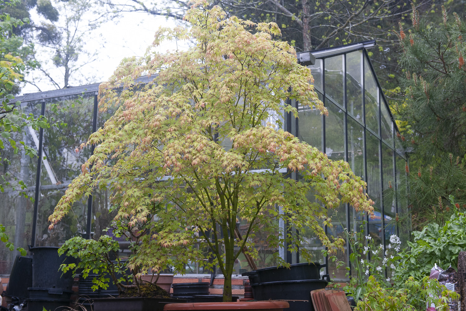 Ici après la pluie: Acer palmatum de graine du Japon, 13° année.
