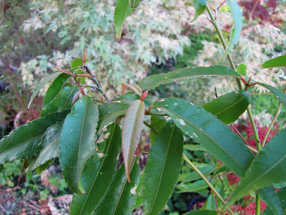 Les feuilles de l'an passé ont quelques taches, les nouvelles feuilles sont rougeâtres.