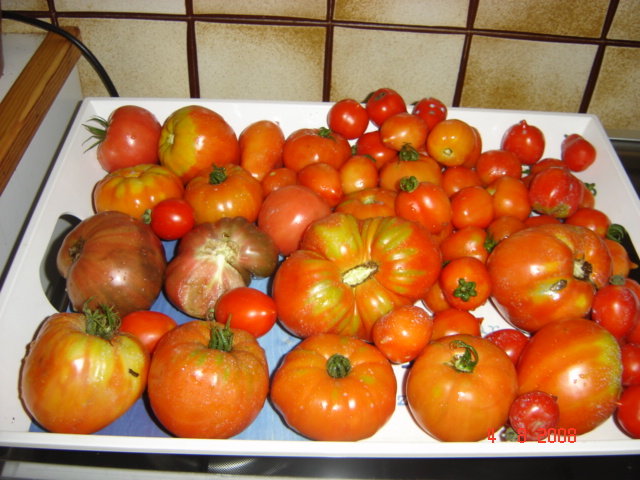 voici le bilan de cette année et oui deja debut de recolte 5 aout.. et après 10 jours de vacances me voila de retour et le mildiou a fait ses ravages donc fin de recolte ou presque 31 aout coulis et congel... c'est mieux que l'an passé nous n'avions pas mangé une tomate le seul hic je n'ai pas recolté une seule graine....