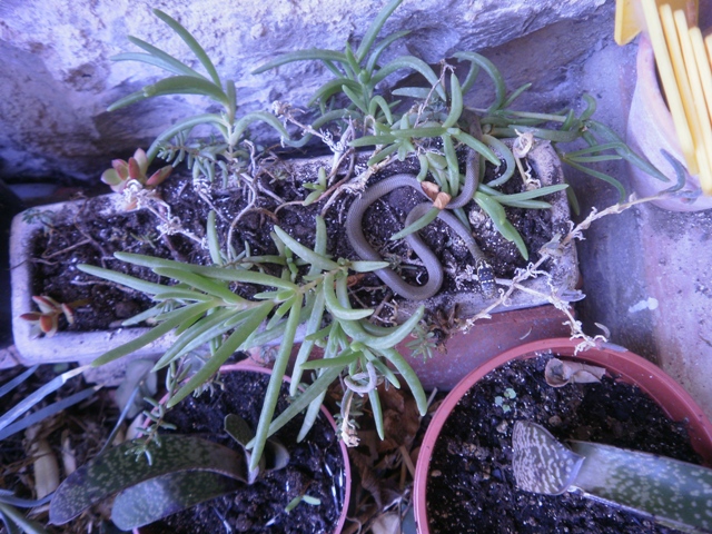 ah tu as une couleuvre !!! j'espère qu'elle va faire fuir les matous qui te causent tant de désagréments ...