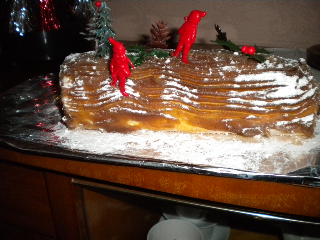 Pas très en forme ! cela voudrait-il dire que la fatigue a repris le dessus ? après ces fêtes le mieux à faire: REPOS, au chaud et pas d'imprudence surtout . en gardant dans le coeur le souvenir de bons momets passés en famille; . Reste-t-il un petit morceau de buche ? elle est si appétissante ! c'est ton oeuvre ?