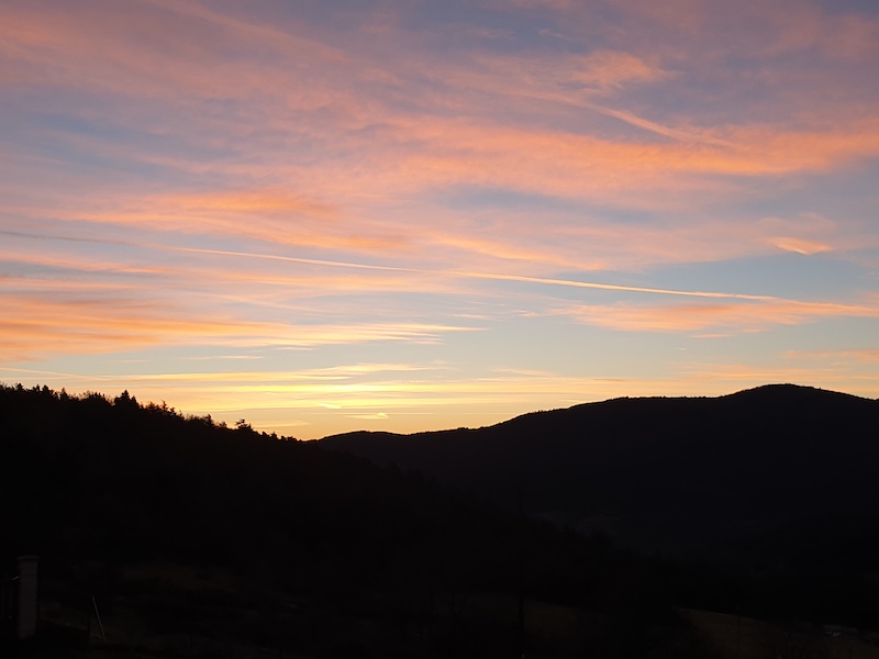 Un petit lever de soleil il fait doux et beau on se dirait pas en janvier ! pas d'hiver apparement cette année ou alors ça va nous enquiquiner jusqu'en mai ....