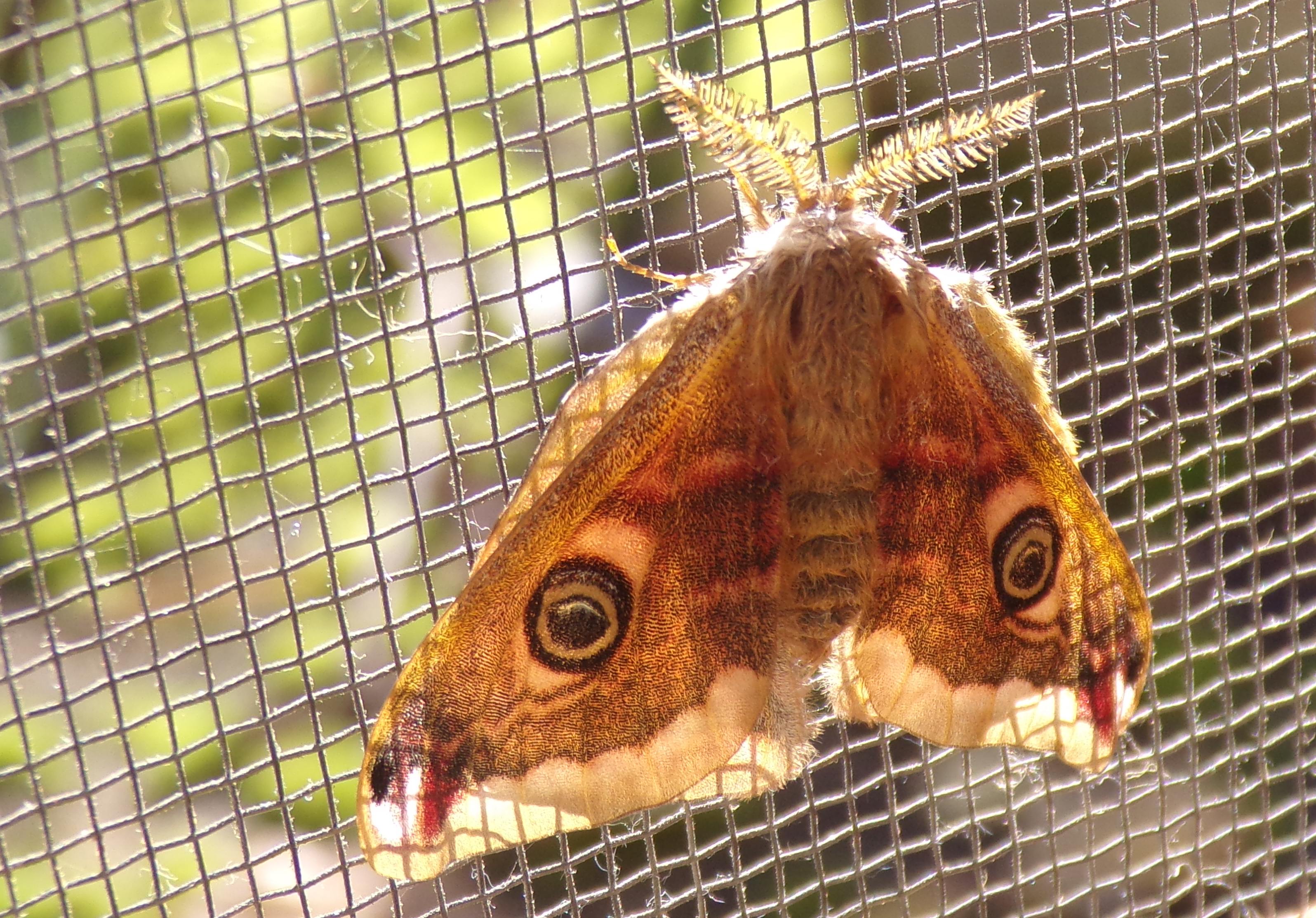 j’ai pu photographier ce mâle de Saturnia pavonia qui s’exposait aux rayons soleil, avant de le relâcher très vite.