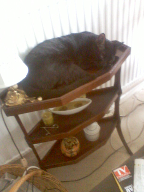 hier soir personne, mais je n'ai pas laissé la fenêtre ouverte, en effet il faisait assez froid, le ciel était bien étoilé; par contre tout à l'heure, je somnolais (vers 7h) quand une bagarre m'a réveillée tout à fait; en regardant, c'était le chat bleu qui était rentré dans véranda (à voir peut-être dans la cuisine) mais un de mes chats veillait (je suppose mozart). Ce chat je ne l'avais jamais vu si près, les autres vont peut-être s'y risquer aussi..........