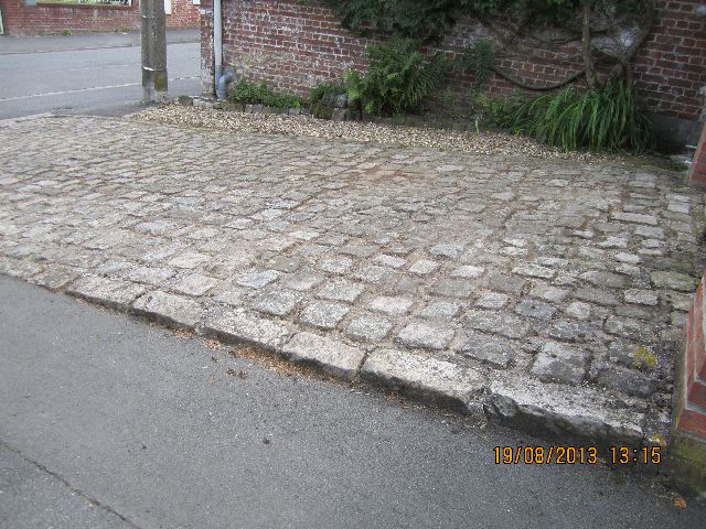, les dégats occasionnés par les camions !! on les avait oubliés ceux-là !!. mais bon c'est la vie ! et mes pavés, cachés sous la voiture, seront beaux pour les copines ! hihihi .