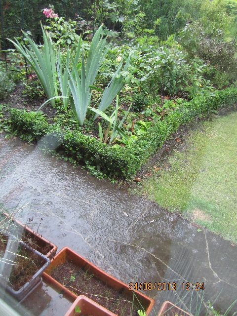 Ici aussi il pleut, une pluie fine et bien pénétrante mais on n'aura pas d'inondations avec!! (heureusement y en a assez eu en juin!!)