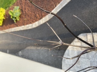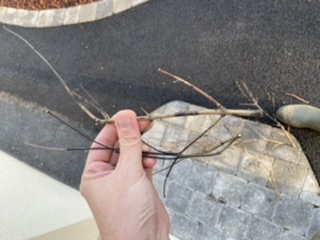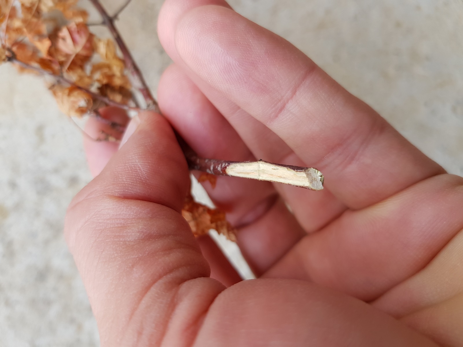 Est-ce que je coupe les branches mortes maintenant ? C'est dommage, l'une d'entre elle est morte à la basse mais se poursuit par plusieurs branches fines et souples plutôt très jolies ... mais c'est comme ça !