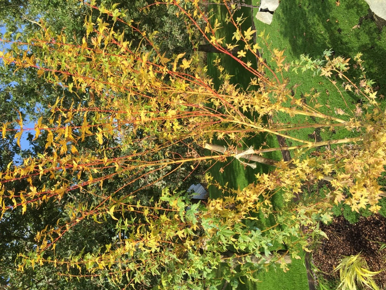 Les feuilles vont tomber fin octobre par ce que c'est l'automne mais peut-être tu verras quelques rouges vifs typiques de blood good.