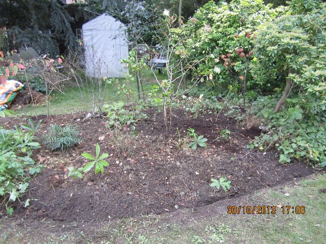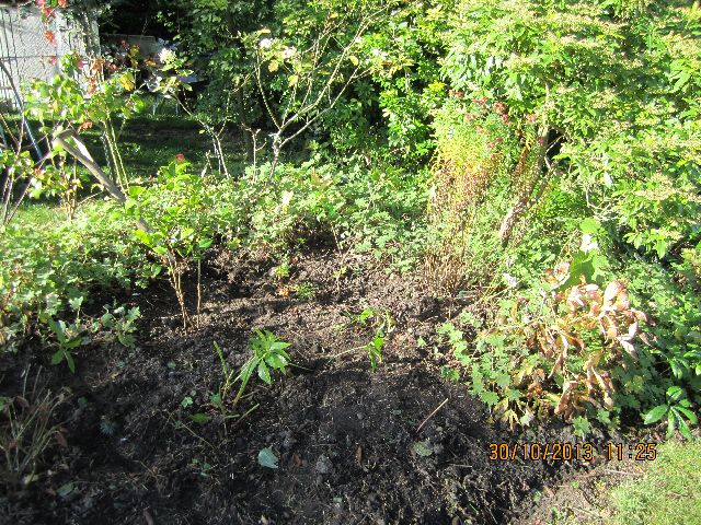 je l'ai déplanté, j'ai déplanté aussi le ribes que j'avais mis au milieu du massif etc .et refait deux gros trous et en ai rebouché un fait avant hier ! .. puis j'ai continué .. j'ai pu constater que le compost est très beau, bien décomposé très foncé je l'ai mis sur l'ensemble en couche épaisse et , je mettrai les feuilles quand on les ramassera .. avec un voile sur les camélias qui sont aussi transplantés .. .. Les bordures ont été retaillées à la bêche mais c'est vrai que la pelouse à cet endroit est un peu " abimée " ...