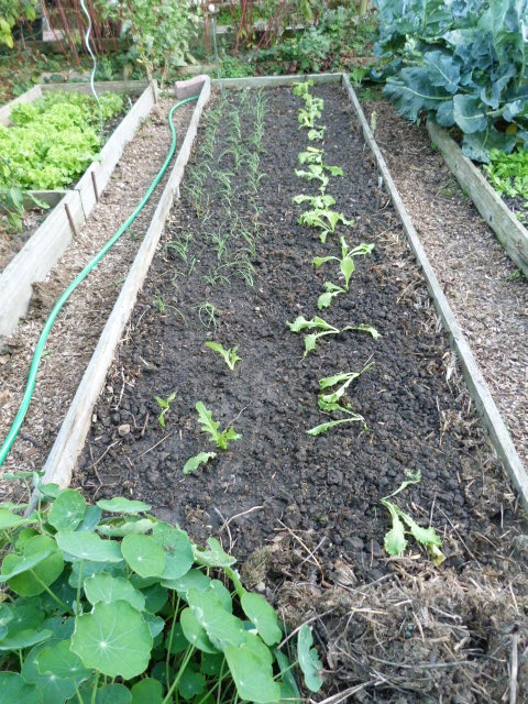 Planté 180 petits oignons blancs, 12 frisées wallonne, et 5 radichetta.