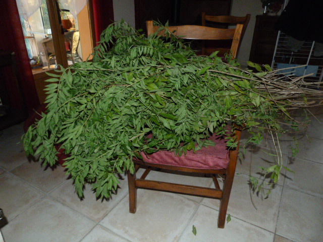 Ce soir, longue veillée d'effeuillage pour mettre à sécher.