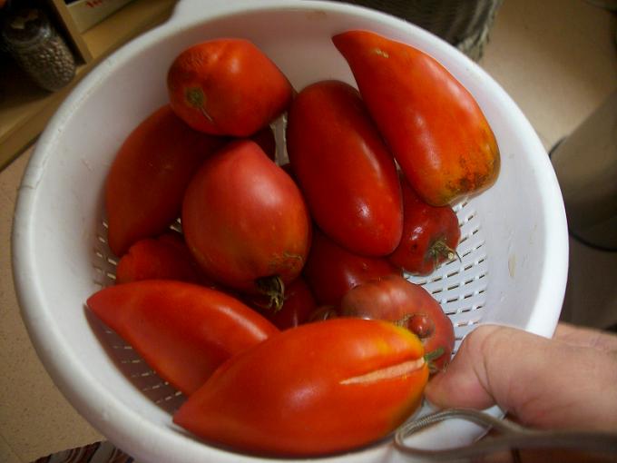 J'ai ramassé, toutes les tomates mures, et il y en avait une belle quantité, ça a donné une belle salade et la dernière grande tournée de sauce pour l'hiver...