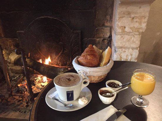 Je vous laisse le plateau du petit déj avec les boissons chaudes, le jus d'orange frais, le pain rustique, beurre, confiture de figues.