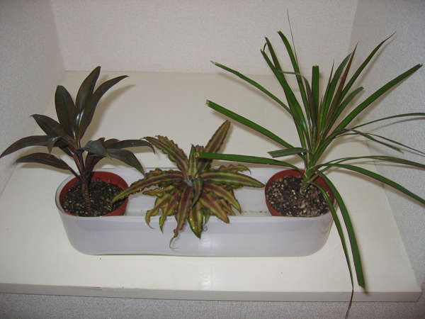 A gauche Dracaena cv dont je ne connais pas le nom, mais très classique, je l'ai depuis 10 ans .
