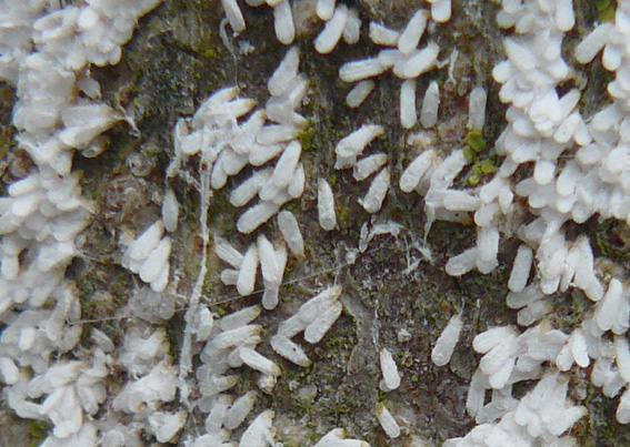J'ai un catalpa boule qui a quelques soucis. Il a sur le tronc des petites choses blanches. On dirait de petits oeufs, comme un ballon de rugby, et d'à peu près 1 mm. Mais en même temps, y a rien dedans, parce que quand on frotte, ca part en poussière (bon, c'est peut-être de vieux oeufs morts avec l'hiver).