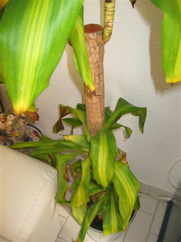 voilà les photos de mon dracaena qui était resté dans un resto où la t° était entre 5/6°.il a commencé à avoir les feuilles qui jaunissent et les tiges qui noircissent.je l'ai ramené à la maison où il fait 21/22°.comment faire pour le sauver,merci