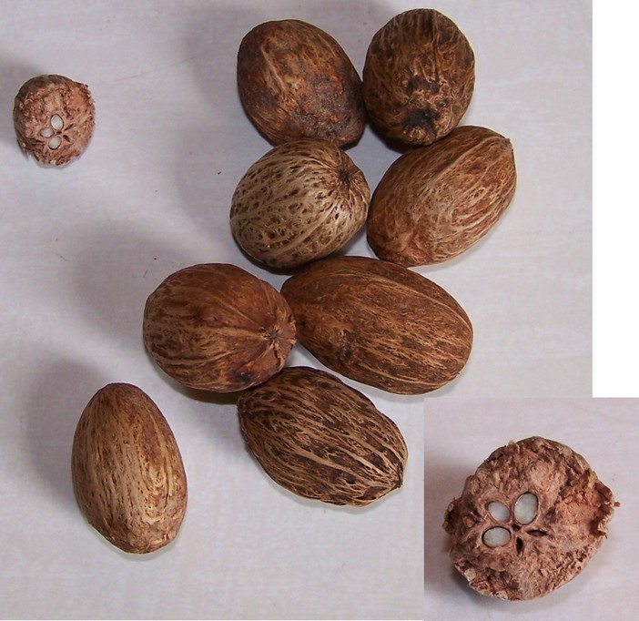 Très dure, j'en ai coupé une en deux pour voir l'intérieur. C'est plutôt filandreux, donc rien à voir à la noix de muscade malgré la ressemblance...