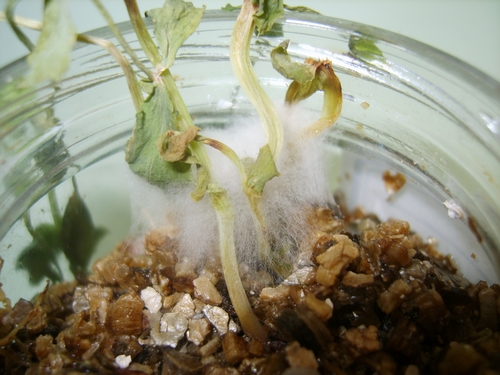 J'ai besoin d'aide pour identifier une sorte de "bactérie". Elle est apparue sur des pois nains que je cultivais dans des petits pots, pour mes TPE. Pendant deux semaines, j'ai plaçé ce pot au refrigirateur, et quand je l'ai ressorti il y avait cette sorte de boule blanche qui est apparue.