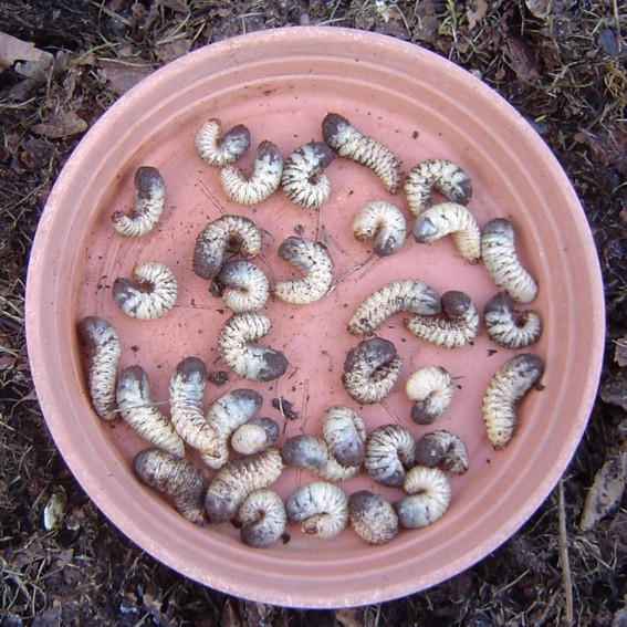 La forme et la couleur font plutôt penser à des larves de cétoines ou à celles d'un insecte proche, clique ici. Les larves de cétoines se nourrissent plutôt de matière en décomposition (compost) alors que celles de hannetons préfèrent les racines des plantes vivantes.