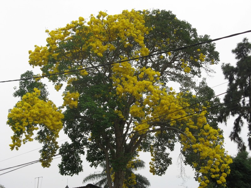 Cet arbre de grande taille a une floraison d'un jaune éclatant qui ne dure que quelques jours.