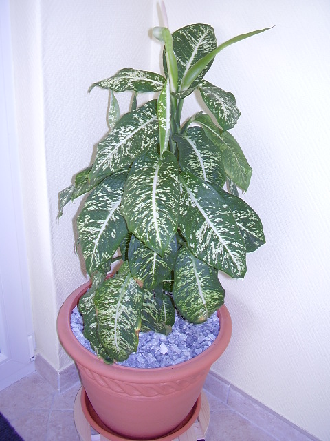 Mais c'est une fleur!!!! Superbe, je n'en avais jamais vu sur un dieffenbachia. Ca devrait ressembler à un arum vert et mince