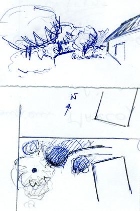 Je ne sais pas ce que tu veux faire de ton terrain, mais même si tu commences à planter côté voisin, essaies de réflechir d'abord au paysage dans son ensemble.