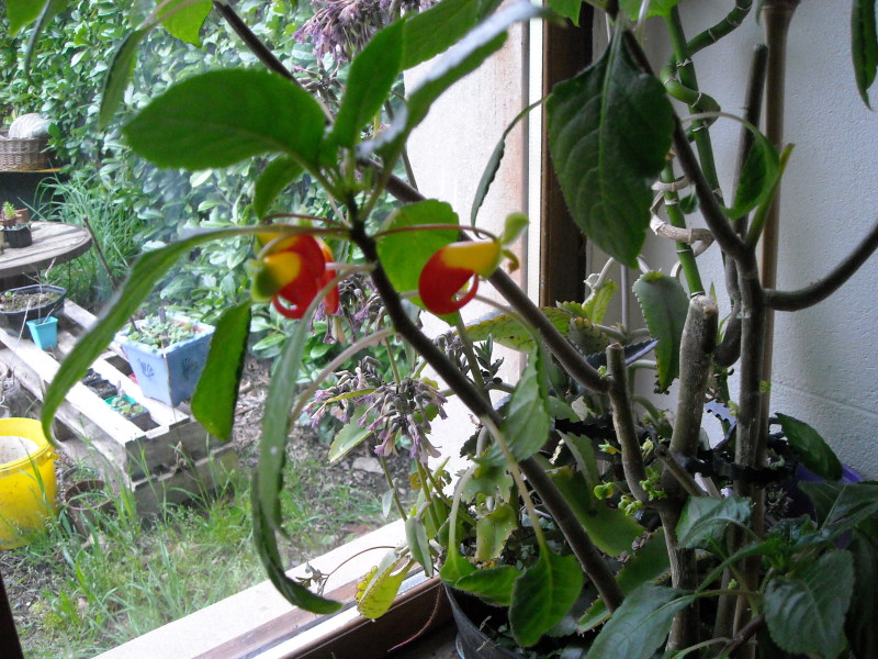 C'est Impatiens niamniamensis, communément appelée impatience du Zaïre, impatience de Zanzibar, impatience bec de perroquet, bec de perroquet ou, pour simplifier son nom latin : "niam-niam".