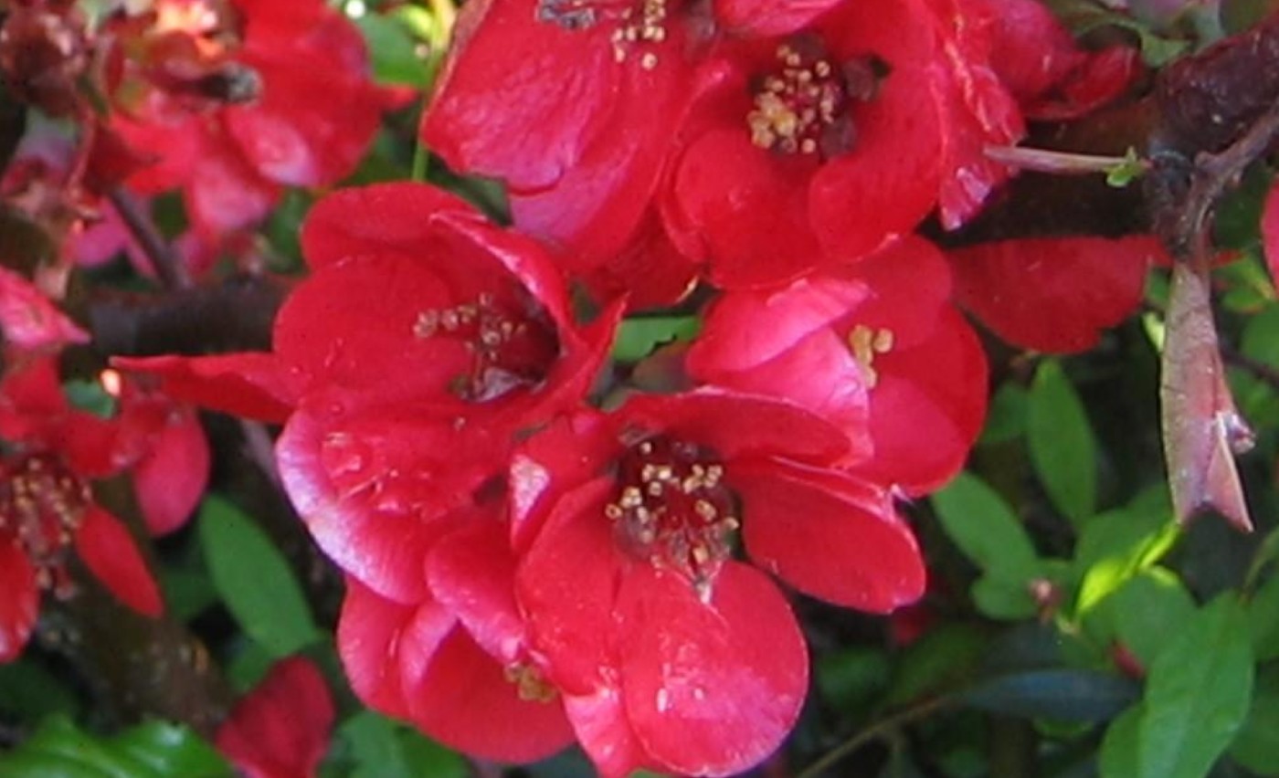 On ne voit pas très bien les feuilles, mais je dirais un cognassier du Japon...