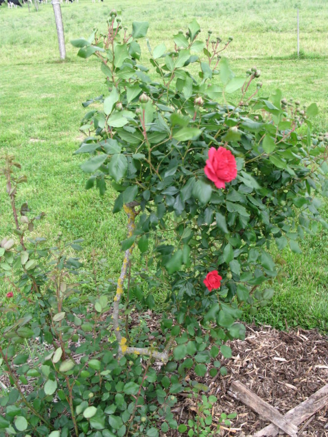 Nous avons depuis longtemps un rosier arbustif, ayant une floraison quasi permanente de juin aux gelées, de couleur rouge à l'ouverture et devenant fuchsia à la défloraison.