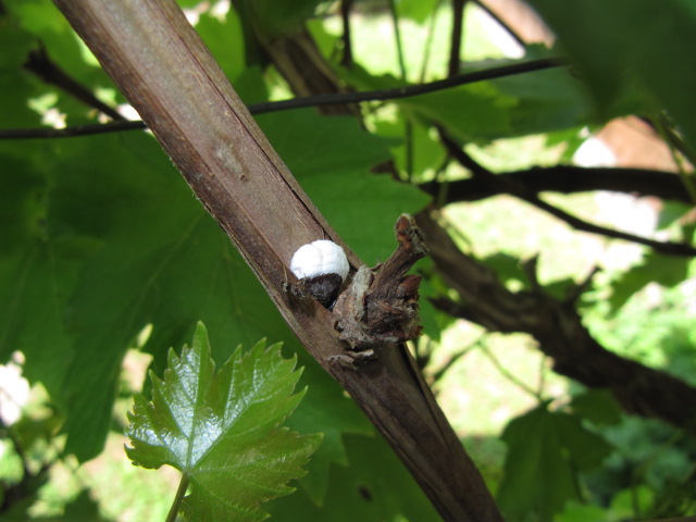 bonjour a tous,j ai des boules blanches caoutchouteuses qui sortent des branchages des vignes.est-ce normal ou serais-ce un champignon ou autre chose merci d avance.
