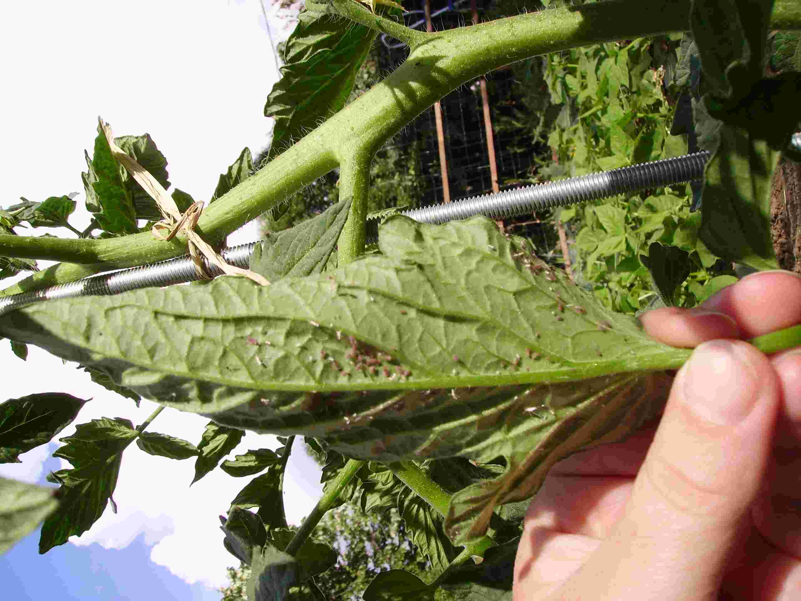 non c'est pas ça, on dirait un pou rouge et j'ai plein d'oeufs sous les feuilles de tomates et dessus un petit peu.