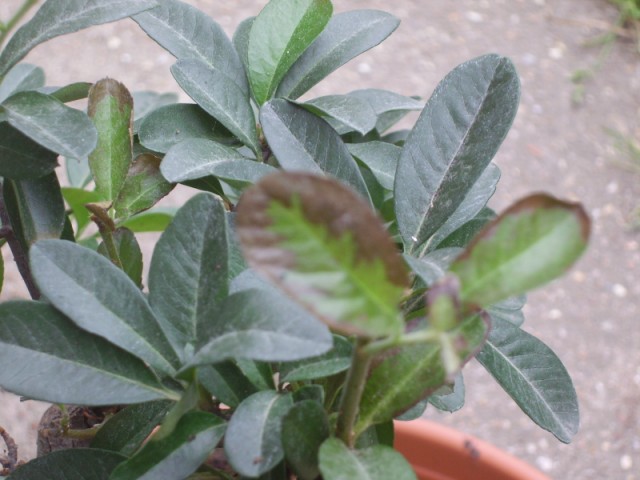 je pense que déjà il y a un problème de pot: il doit être un peu à l'etroit, surtout que le pot est peu profond.. il faut le dépoter pour voir comment les racines occupent la terre:l'arrosage n'est plus efficace qd il n'y a plus assez de terre...il va sans doute falloir le rempoter