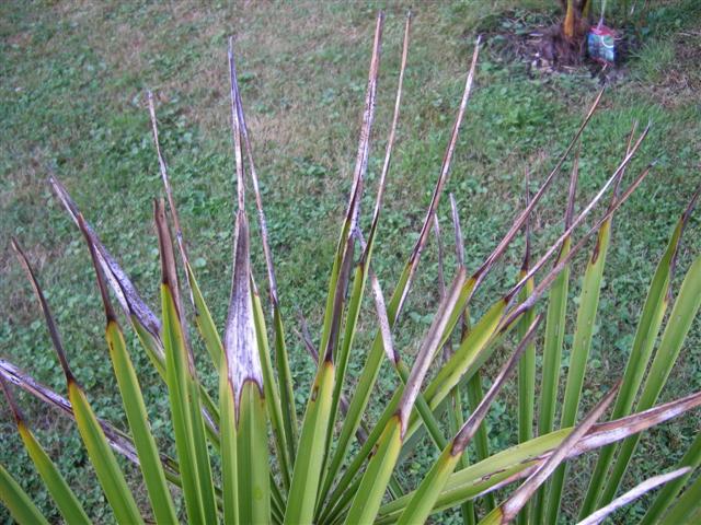 les jeunes pousses sont saines, ce qui renforce la théorie du coup de gel...tant que tes trachy sont petits, protège également les palmes l'hiver. Une fois qu'ils feront 7 m de haut, t'auras plus de soucis !!